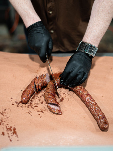 Our process starts with quality cuts of meat and simple ingredient dry rubs, and then we load up our smoke boxes with Natural Pecan Wood Logs, afterwards we allow slow and low 14 hours of smoking. Once our process is finished, our briskets are ready to be served as sliced or chopped beef. We also offer Pecan Smoked Chicken Breast and our own Pecan Wood Smoked Sausage.